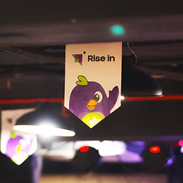 While designing the mascot, I was inspired by the bird icon in the Rise In logo. Using the brand’s color palette, I created a cute and minimalist character. I also placed the star icon from the logo on the bird’s belly to strengthen its connection with the brand.